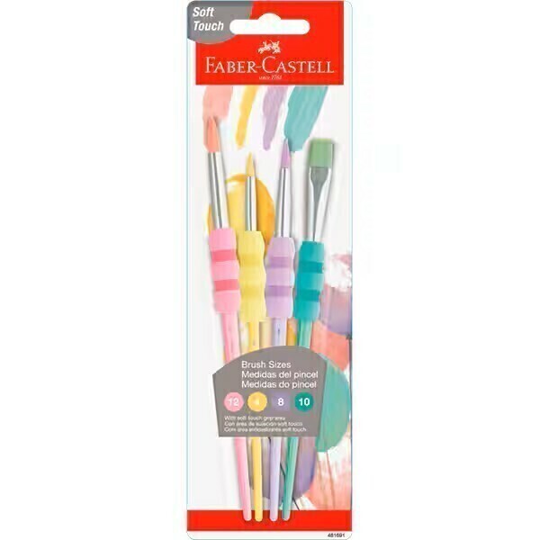 Os pincéis Soft Touch da Faber-Castell são ideais para uma variedade de atividades que estimulam a criatividade. A cartela inclui quatro pincéis com pontas diversas, possibilitando a criação de traços de diferentes tamanhos.