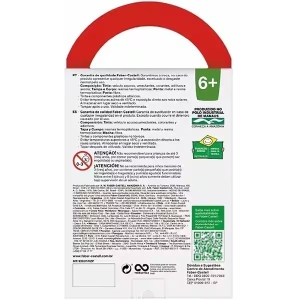 Corpo triangular ergonômico; Ponta chanfrada média: para traços finos de 1.0mm e grossos de 4.0mm; Tinta base água: não mancha o outro lado da folha.